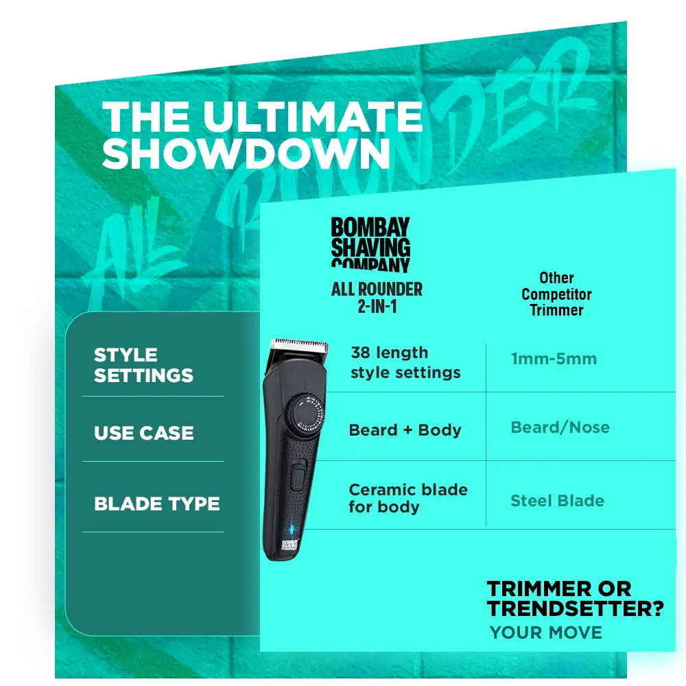 No nicks, no fuss, no switching devices. Body to beard in one smooth move. Ceramic cool, steel sharp. Khul ke Khel.
