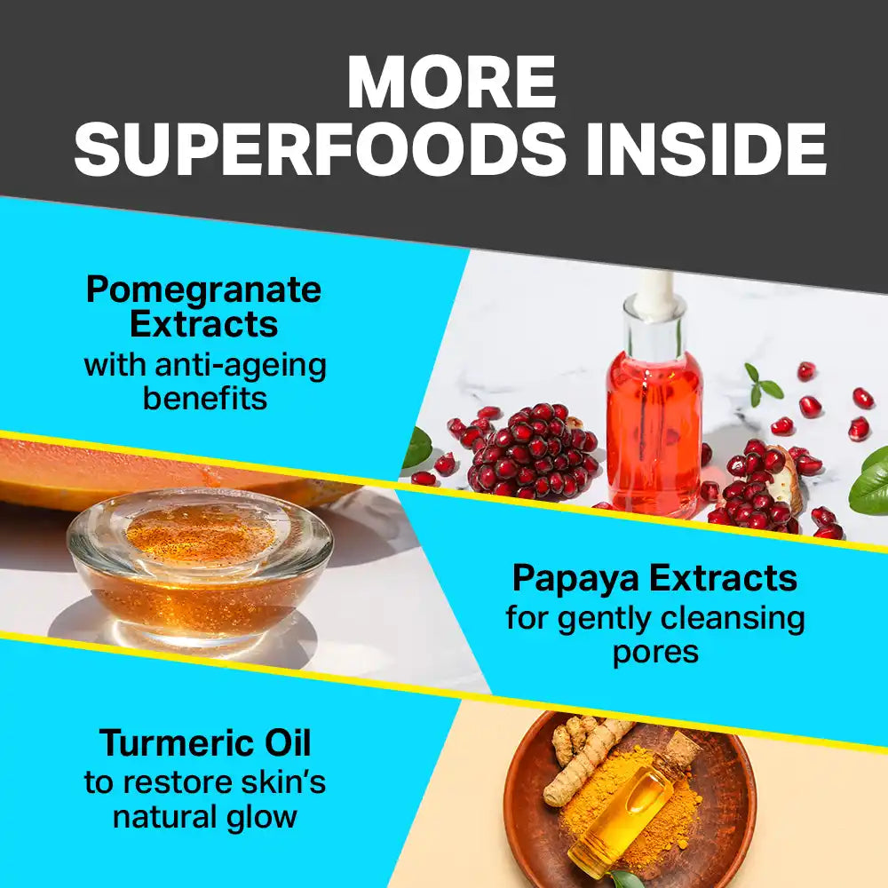 - Activated Charcoal Face Scrub: Removes dirt, pollution and excess oil from skin's surface to de-tan and protect.